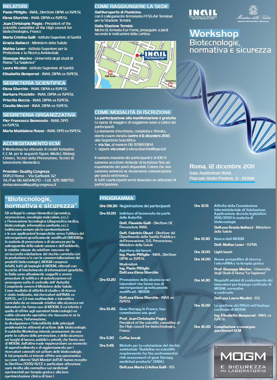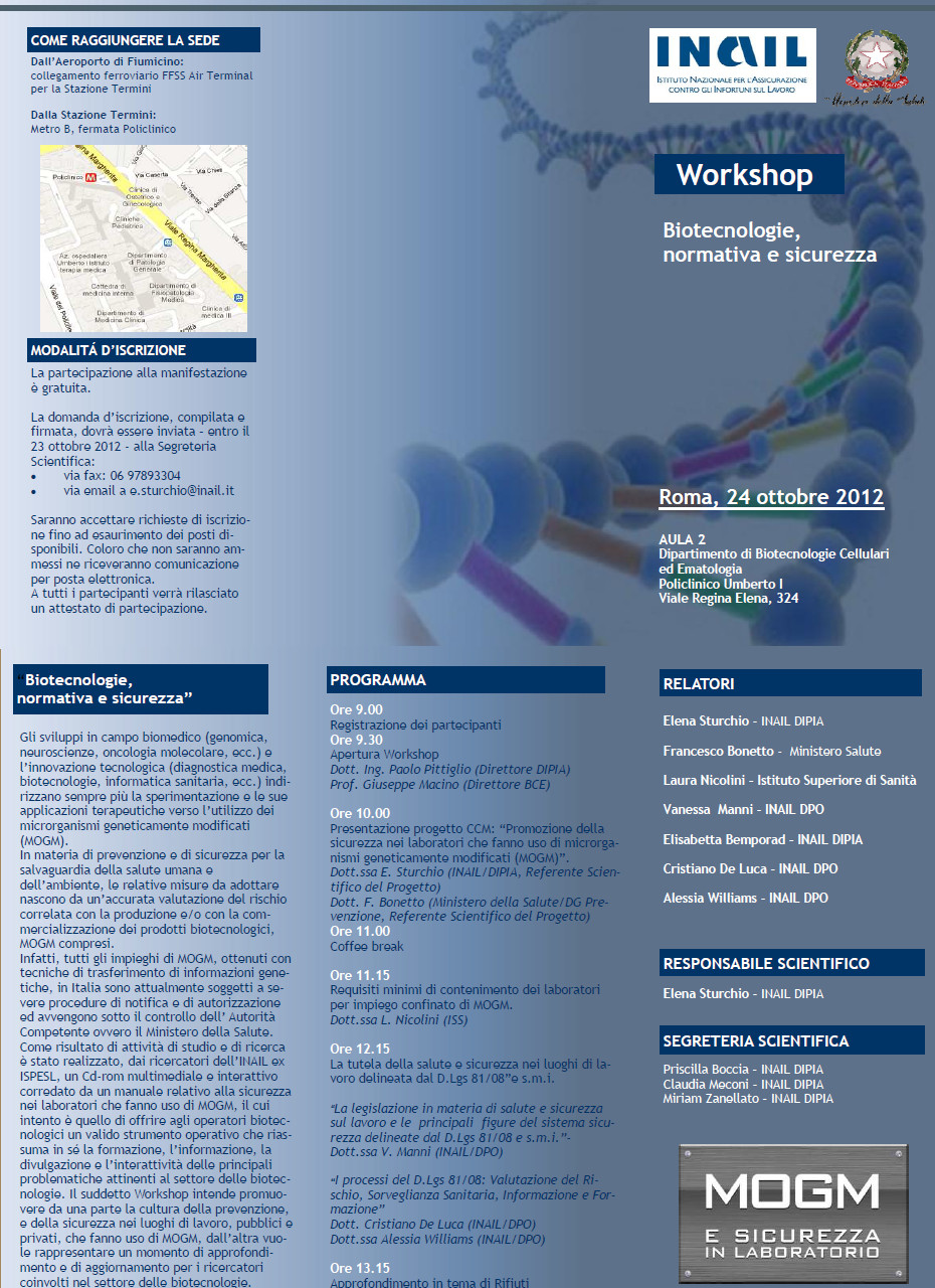 Locandina workshop biotecnologie, normativa e sicurezza